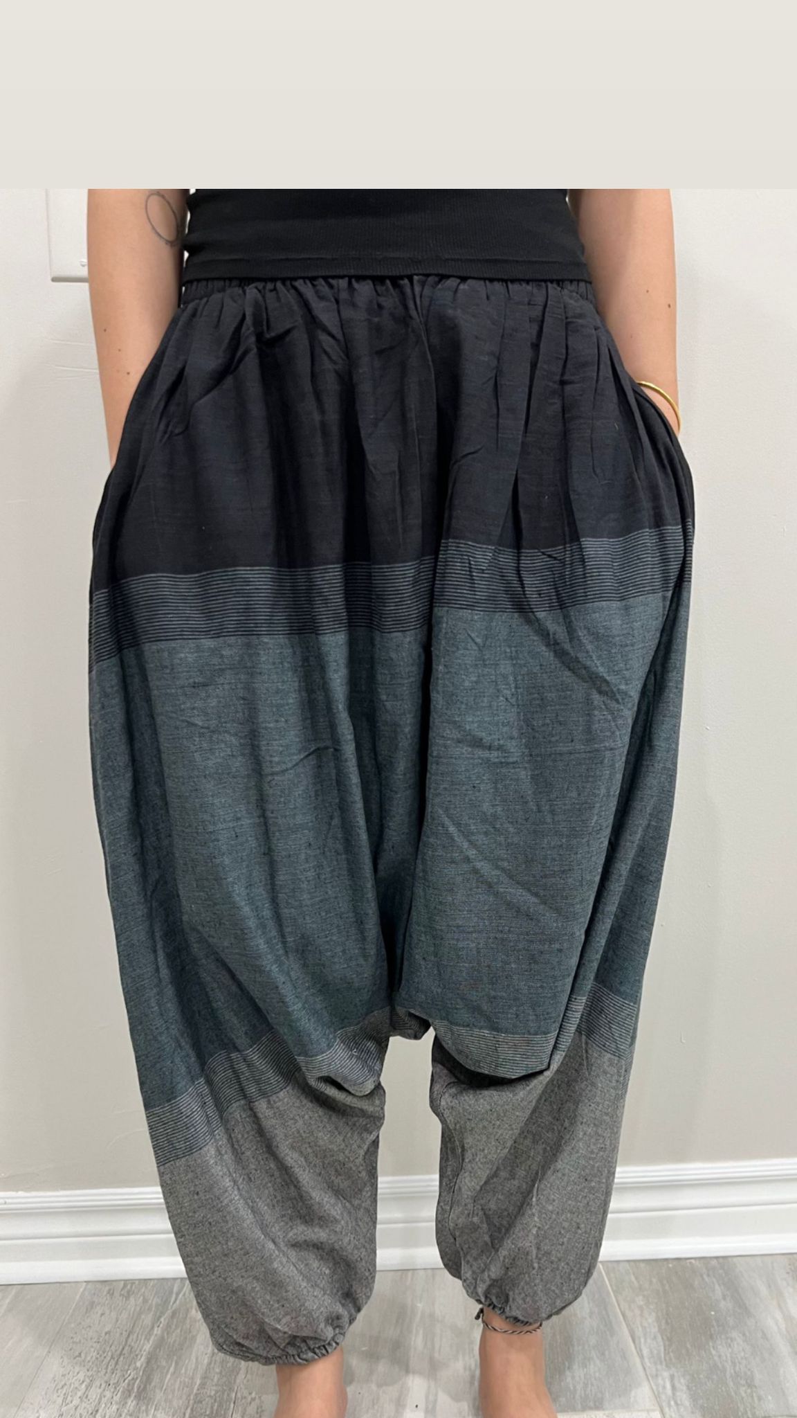 These harem pants are 100% cotton. Available in different colours. Free size. Comfortable, breathable, lightweight and perfect for Yoga and Meditation. More information please call us or text us.